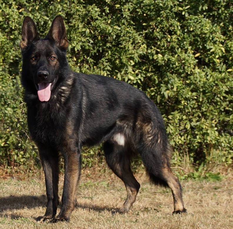 Carlo is a tall male with over medium bone and very dark pigment. He is social and happy. He is neutral with dogs and is good with other animals. While he achieved his IPO1 at just 2 years of age, he is not a great Schutzhund dog. Carlo is a very nice family dog and is easy to live with. He is half brother to our male Rags.