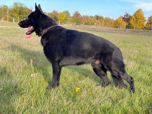 Elodin is a social male, he likes people and while not inherently dog aggressive, he does not love other males. He has a nice, genetic full and calm grip. He has good ball drive and is bidable.
