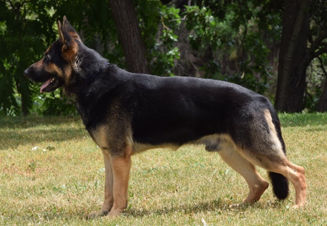 Riggs is out of our S Litter between Quinzi vom Poppitz IPO1 & Knurri’s Arry IGP2 and is pure East German Lineage. He was sold as a puppy to Kim Haegely. Kim raised him and had him titled in AKC Herding by Molly Wisecarver at Double M Stockdogs. When Kim decided she needed to sell Riggs, I was happy to get him back.